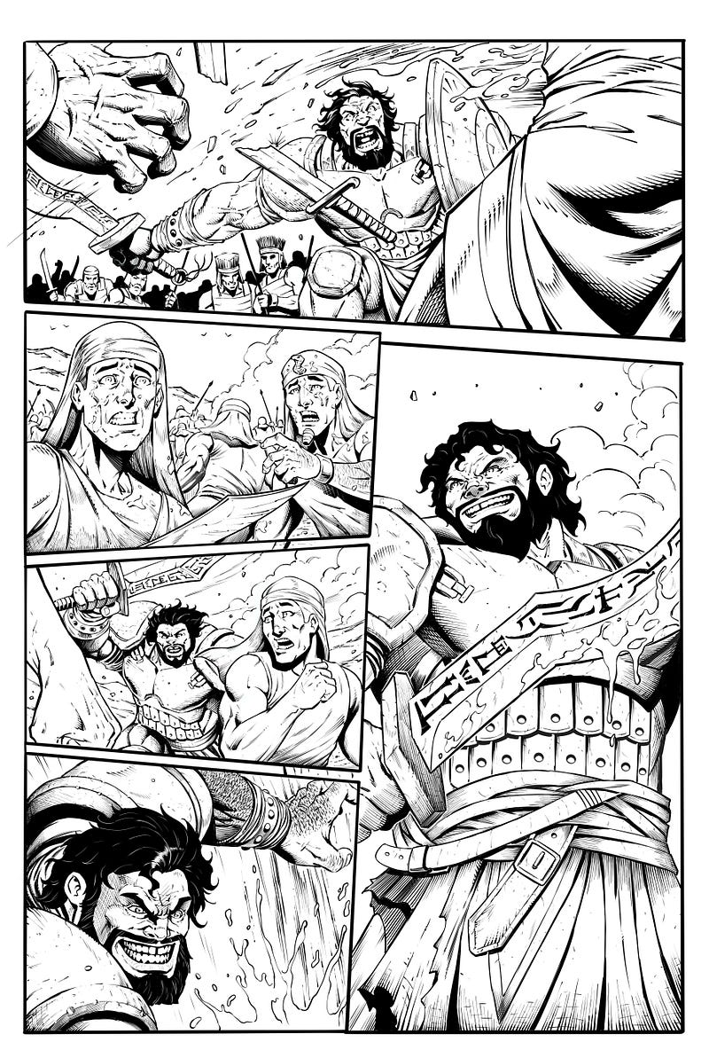 I am now inking the pages for a comic on Goliath. The story of David and Goliath is as old as time but to see it come together in this amazing comic art style is something special.